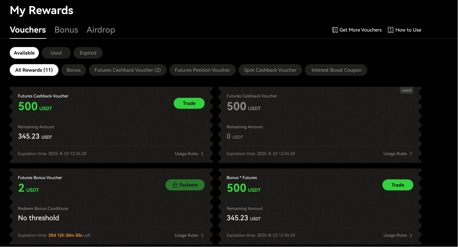 Futures Trading: Bonus, Bonus Vouchers, Position Vouchers, and Cashback Vouchers