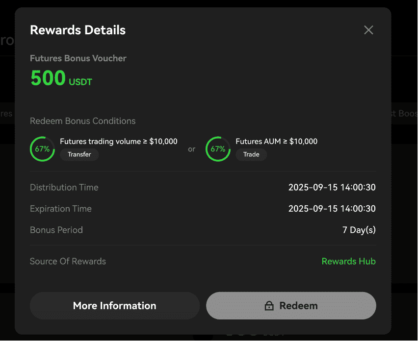 Receive direct prompts for Spot and Futures Cashback Vouchers right on trading pages.