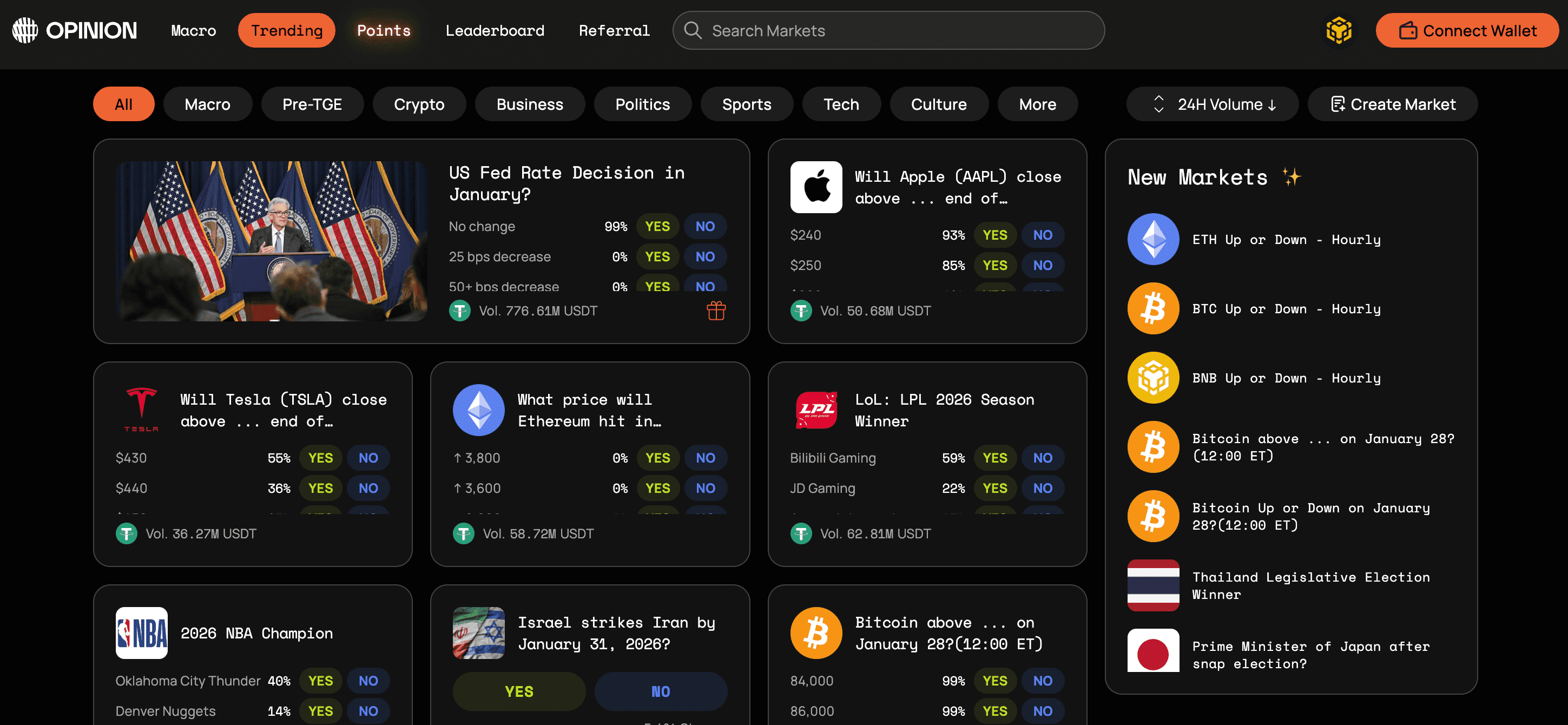 OPINION está diseñado específicamente para este propósito. En vez de operar como una única plataforma de mercado de predicción, OPINION funciona como infraestructura: una capa programable de compensación y liquidación para tokens basados en resultados, sobre la cual pueden construir diferentes plataformas de predicción u opinión.