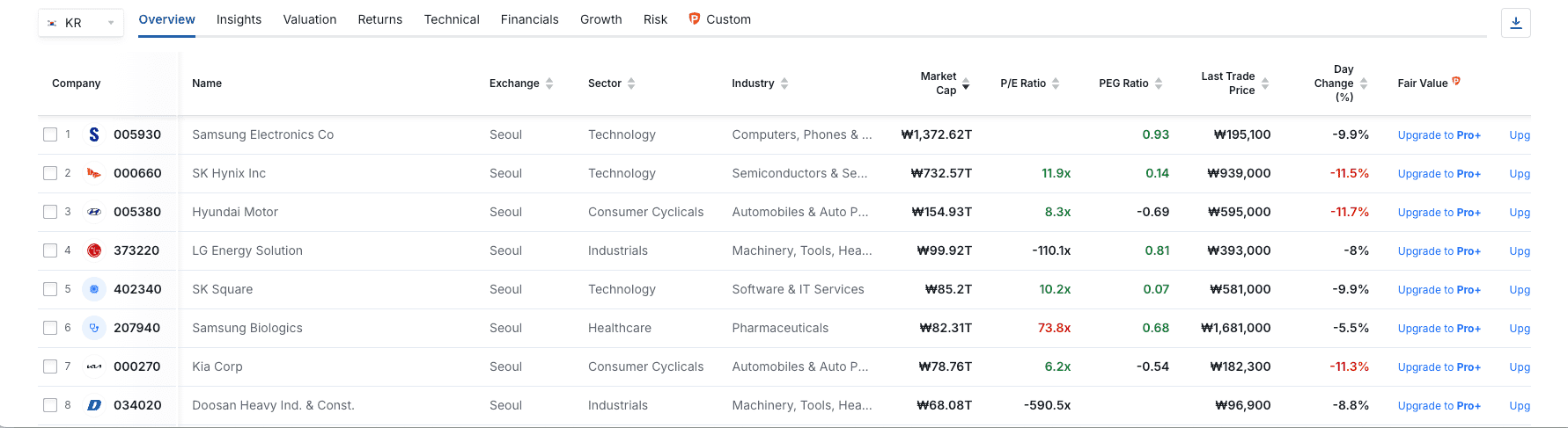 - Samsung Electronics (005930): Cayó un 9,9%.