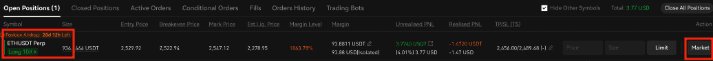 Click the “ Market “ button to close the position.
