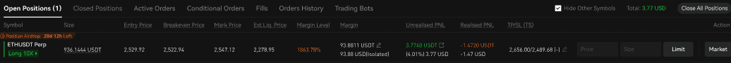 After opening a position, you'll be redirected to the trading page to view your voucher position.