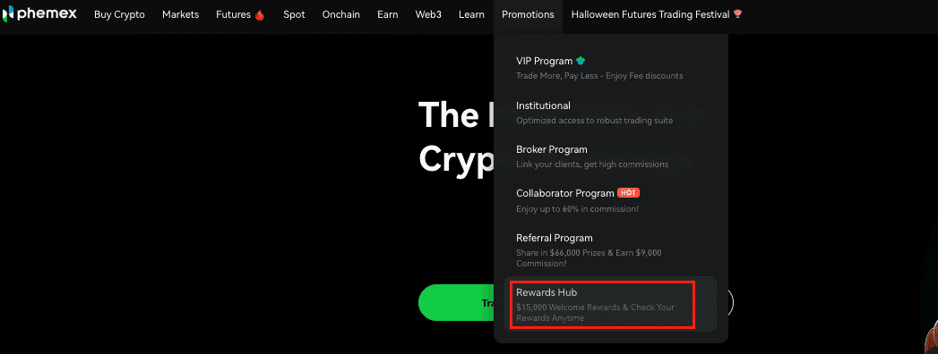 1)Log into your Phemex account via the website;