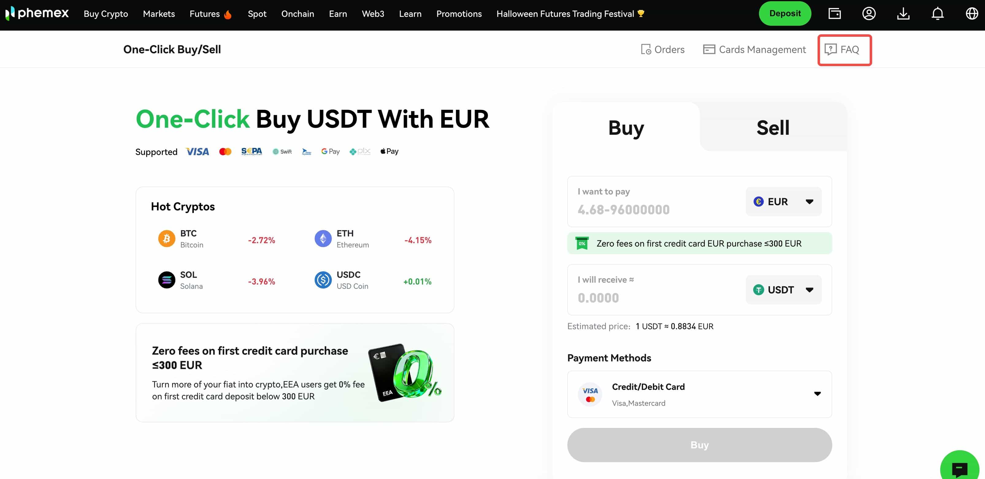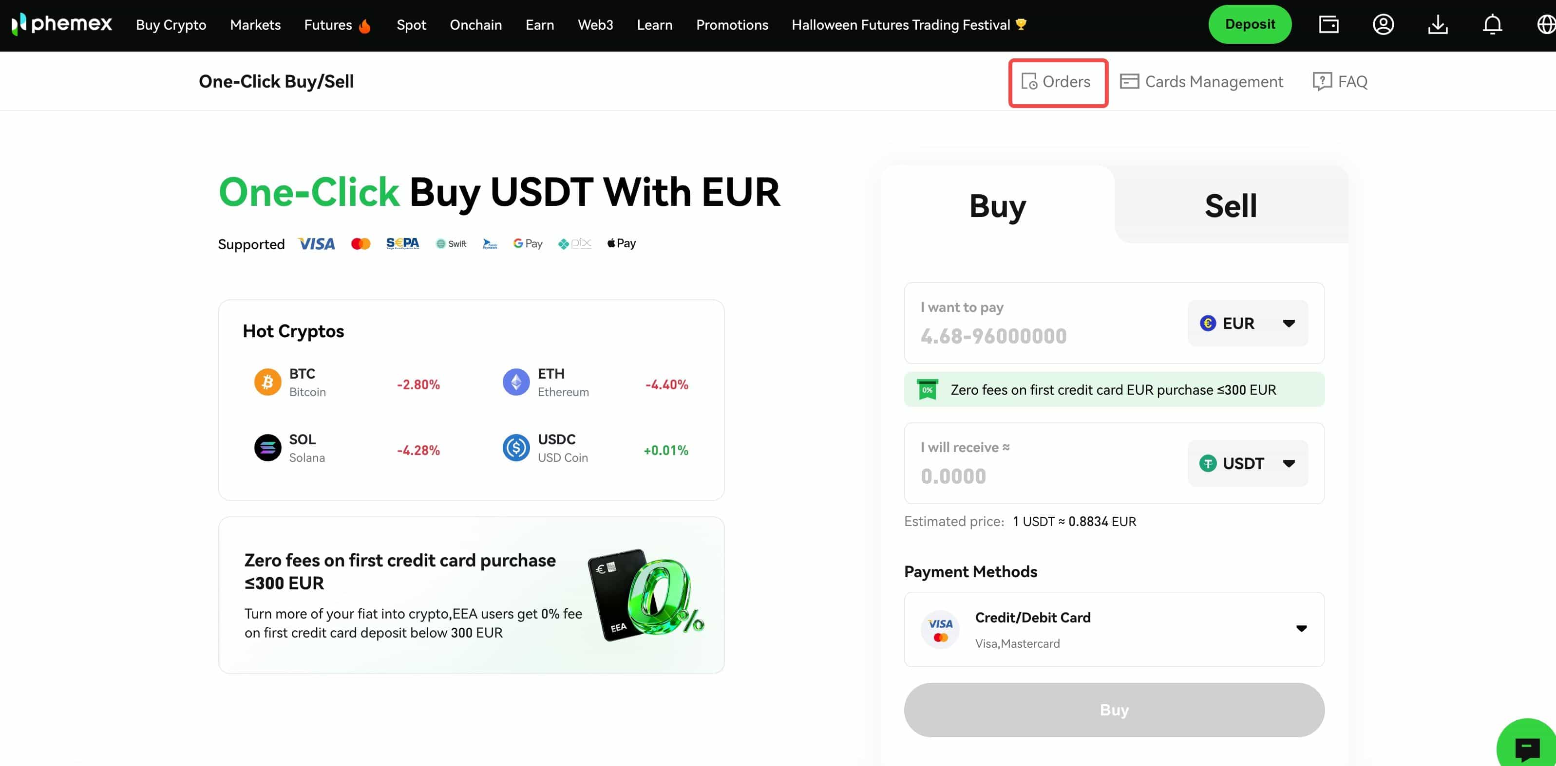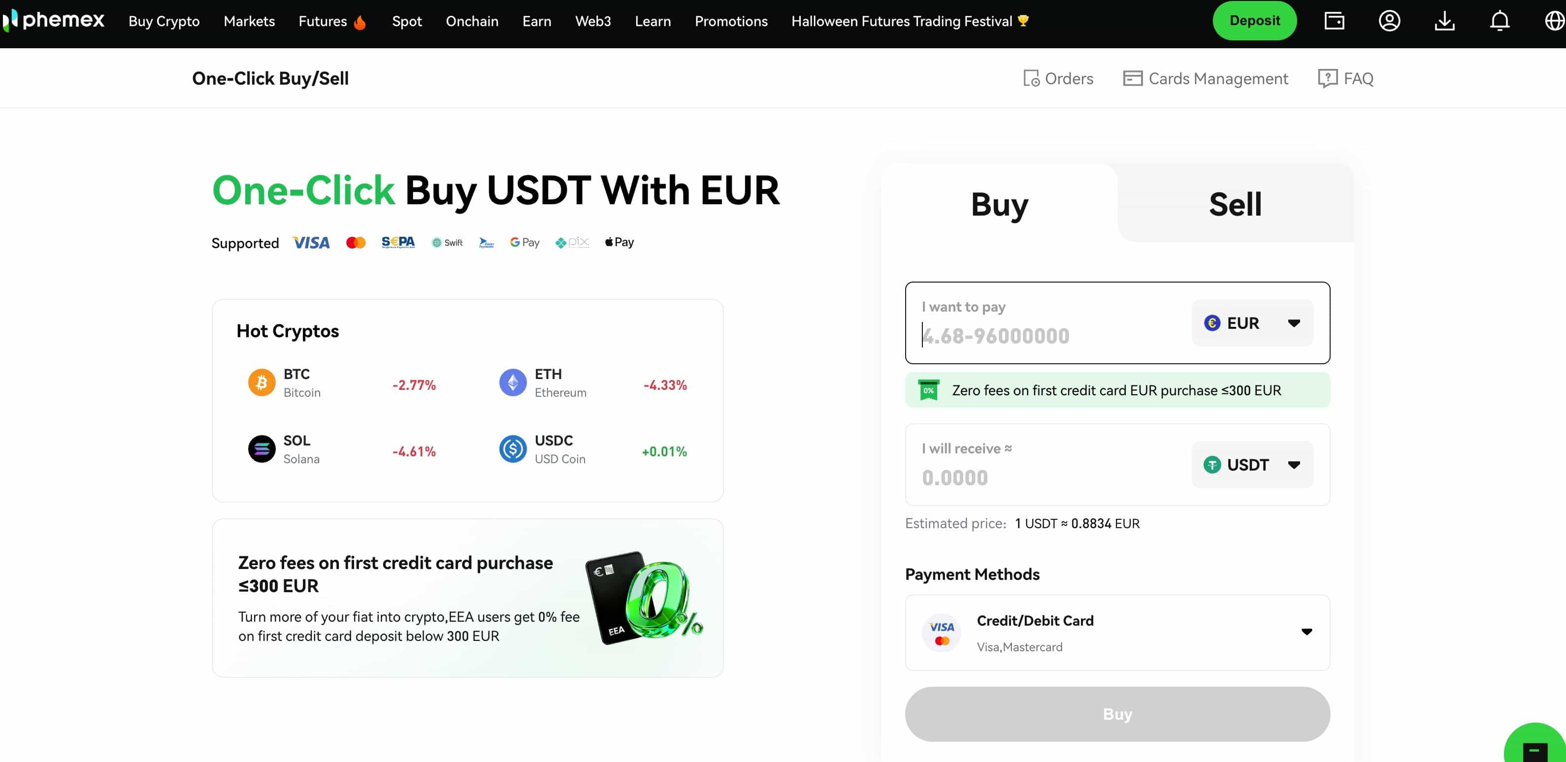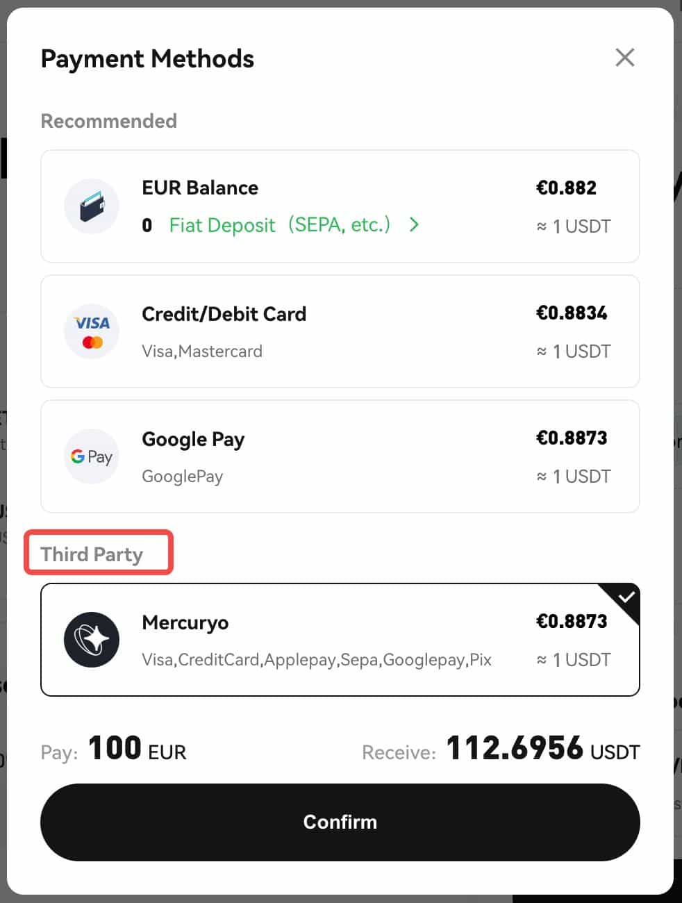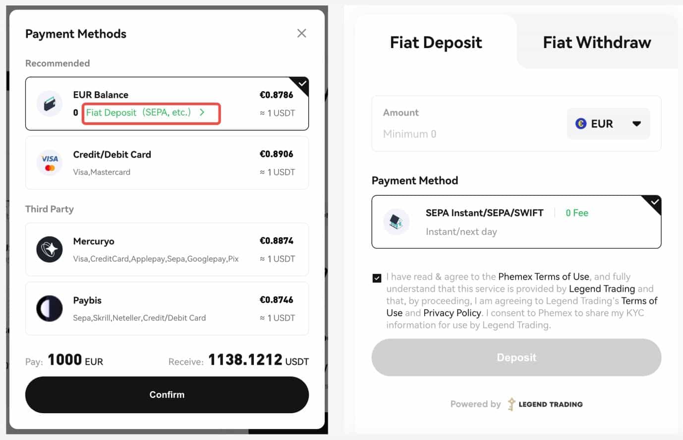 Note: Phemex will recommend a payment method to you based on the current best exchange rate. It should be noted that the exchange rates are provided by our service partners.