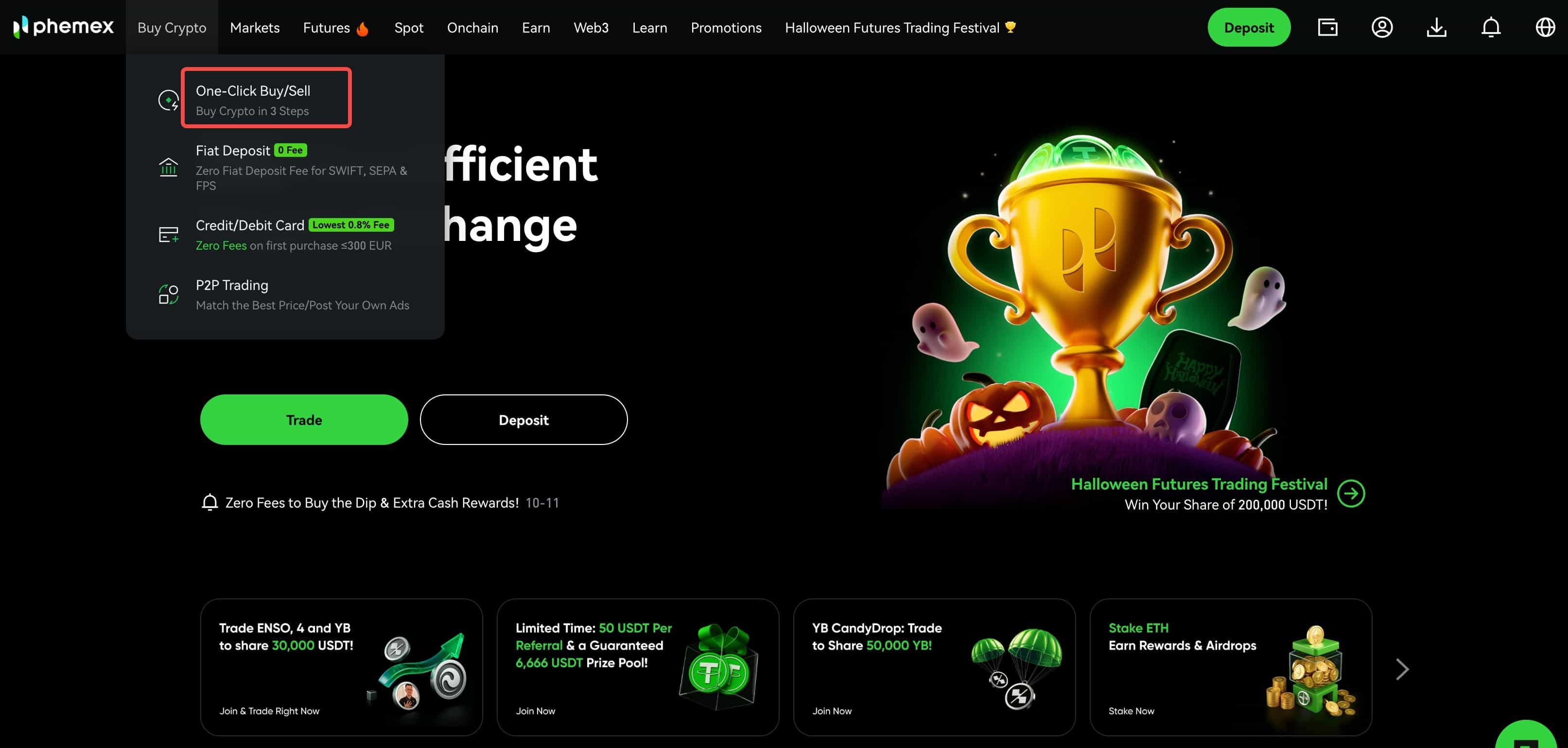 - On the header menu, hover over ‘Buy Crypto’ and click ‘One-Click Buy/Sell Crypto’.