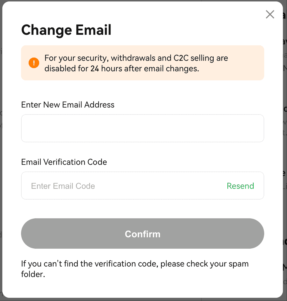 Withdrawals will be temporarily locked for 24 hours after a successful email change for security reasons.