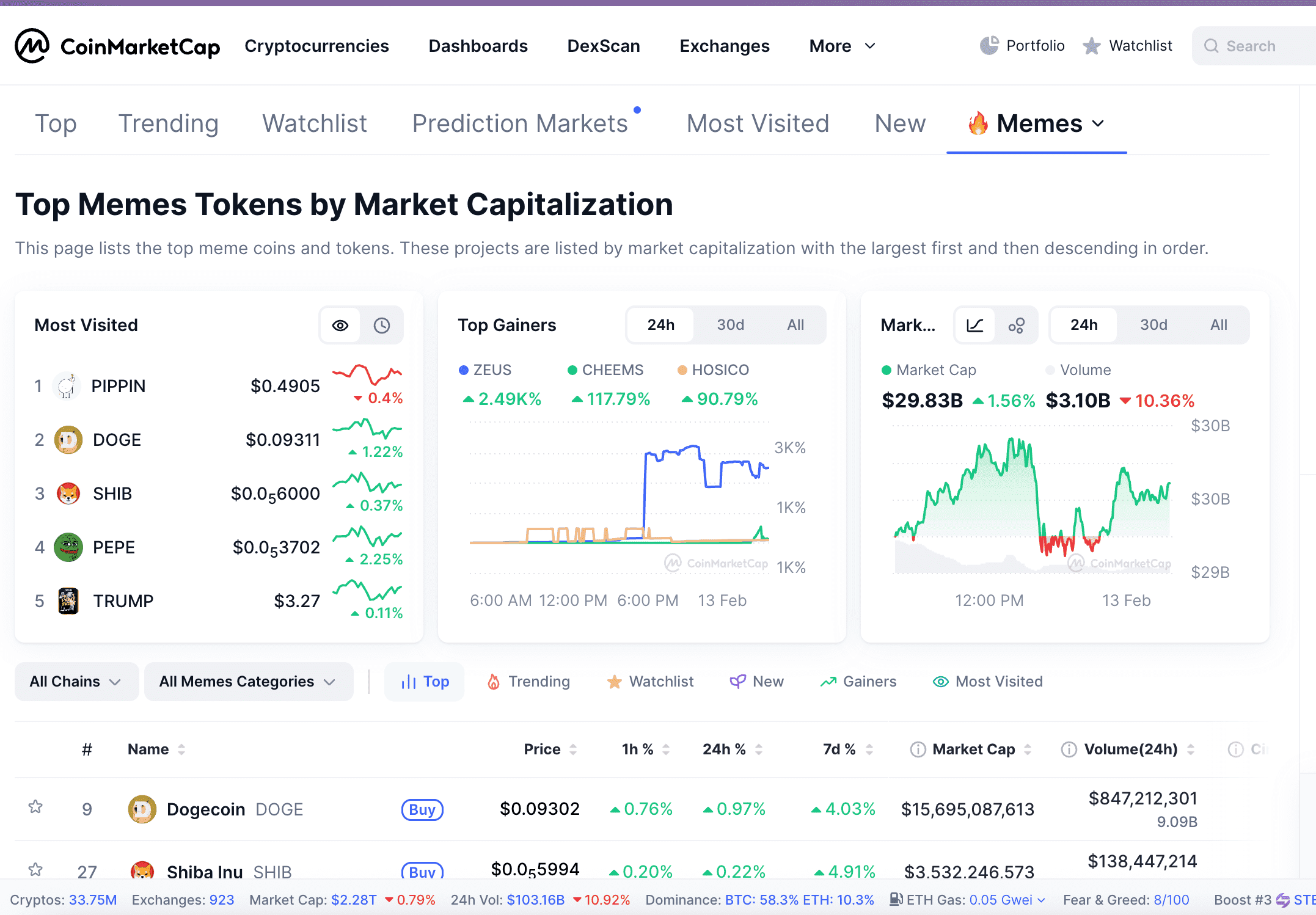 ZEUS와 같이 단기적 강세를 보이는 종목이 이목을 끌고 있지만, 밈 코인 내 대다수의 유동성은 여전히 검증된 주요 자산에 집중되어 있습니다.