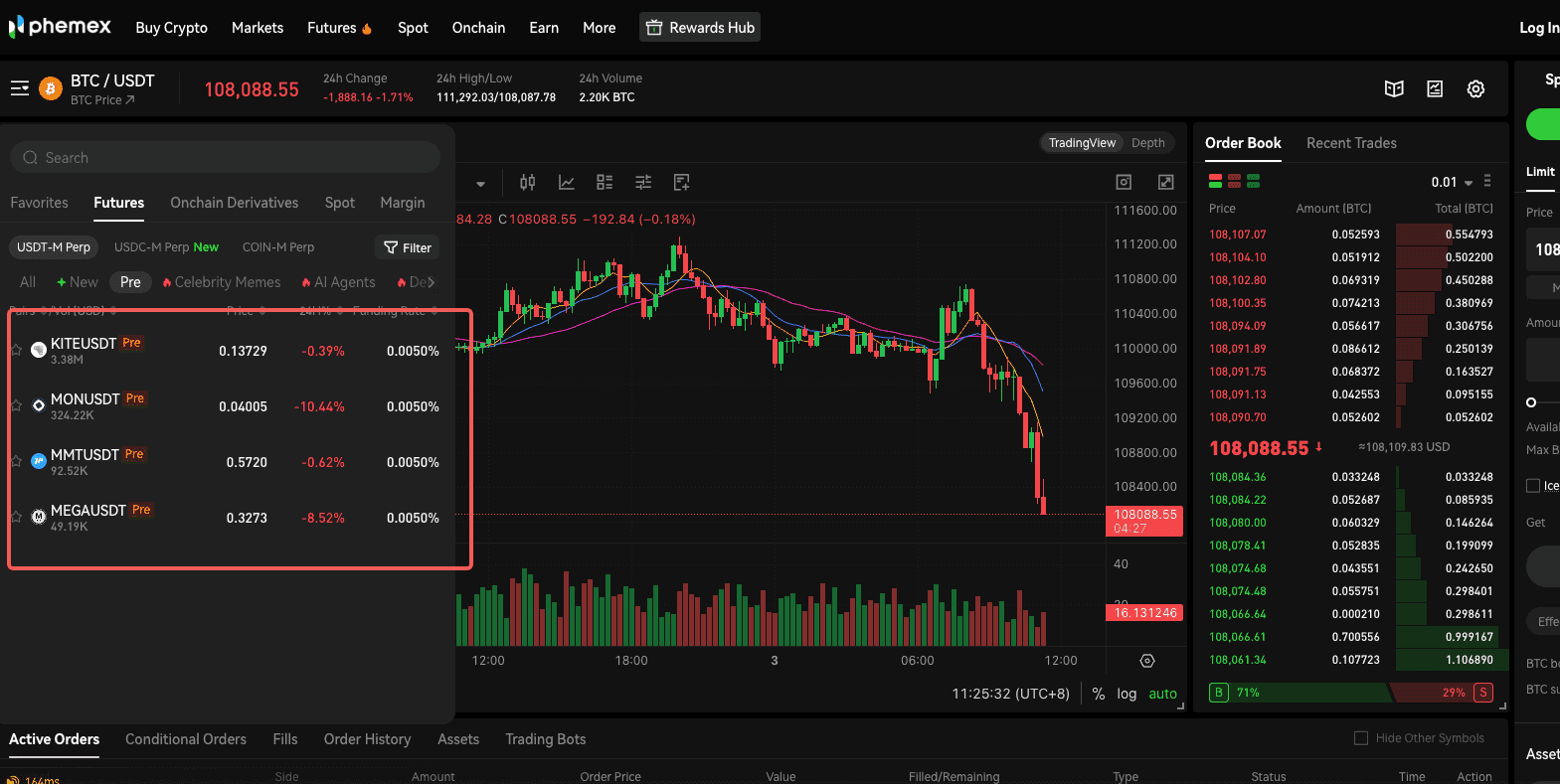 2025년 11월 3일 13:10 UTC, 결정적 순간이 도래합니다. KITE/USDT 현물쌍이 Phemex에 상장되고, 프리마켓 계약은 무리없이 일반 퍼페추얼 계약으로 전환됩니다.