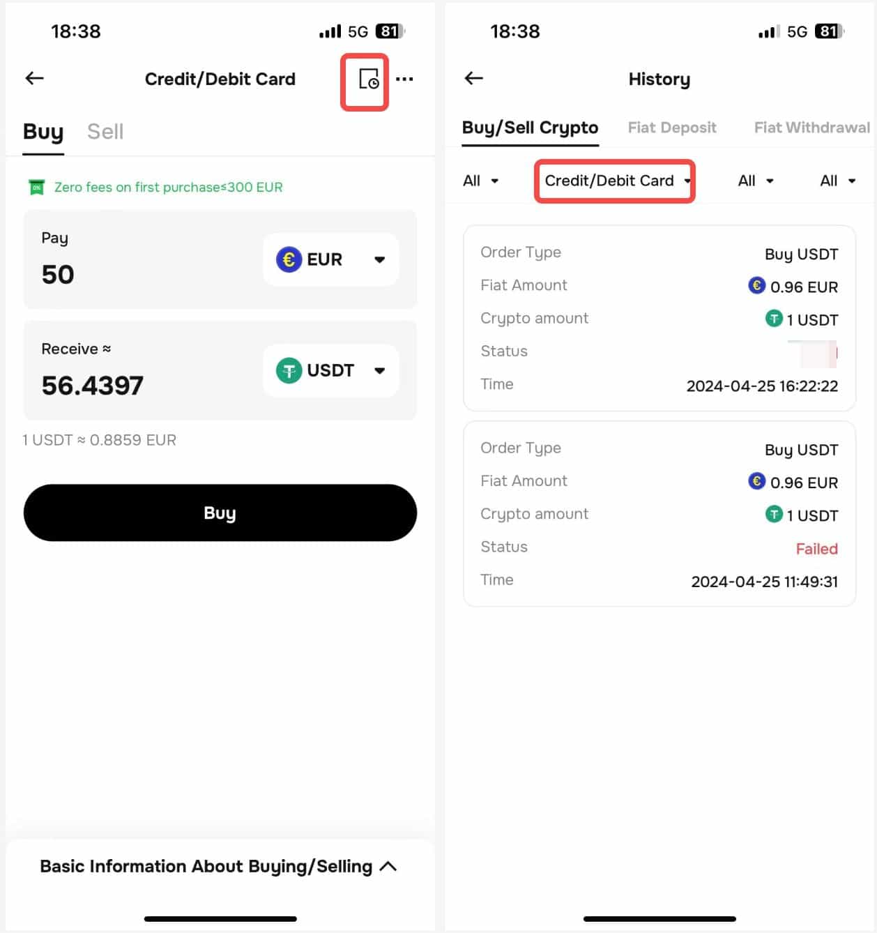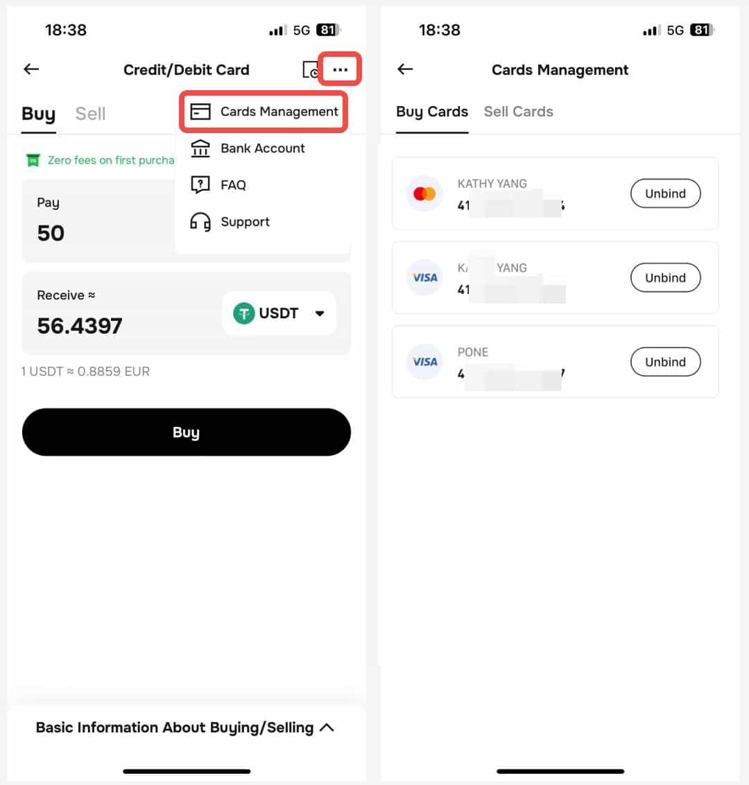 - 신용/체크카드로 암호화폐를 구매하려면 반드시 KYC 신원 인증을 완료해야 합니다.