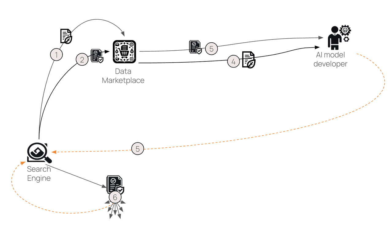 Verificação de procedência — Esta imagem, vídeo, áudio ou documento foi criado ou editado por IA? Qual seu histórico? O padrão Content Credentials da C2PA é baseado nessa ideia, propondo uma forma de estabelecer procedência de conteúdo digital e vincular, de maneira segura, declarações sobre como o conteúdo foi criado ou modificado.