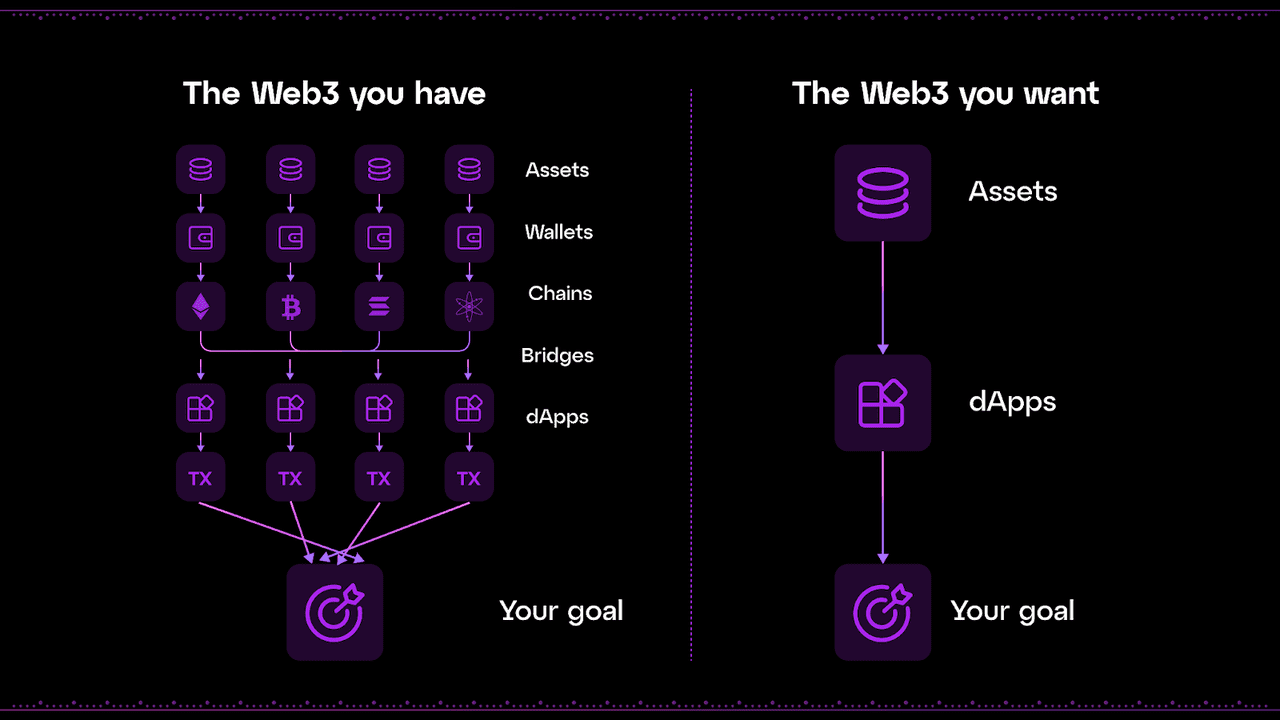 - Основная цель — устранить сложность в виде ручного бриджинга, необходимости держать несколько газ-токенов, переключения сетей и ручной маршрутизации транзакций.