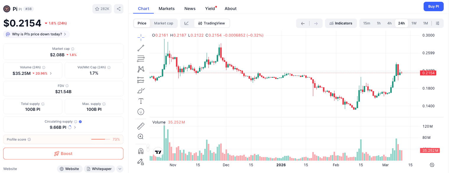 Динамика связана с предстоящим обновлением Mainnet v20.2 (12 марта) и ожиданием событий ко Дню Pi 2026.