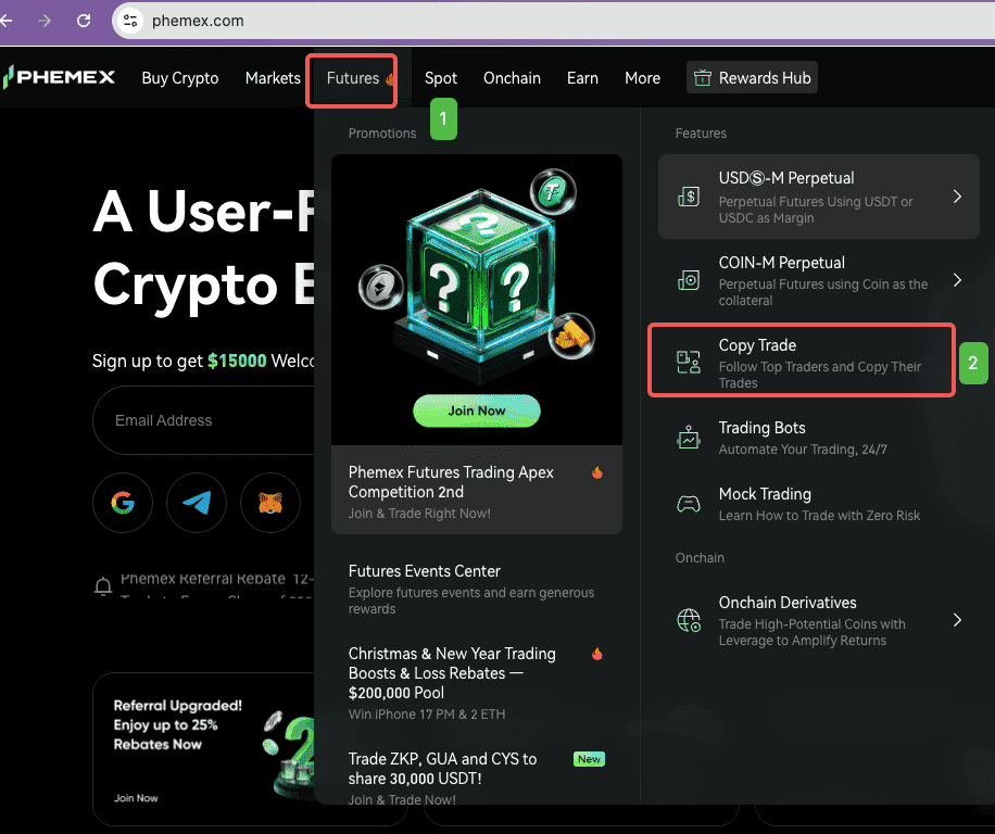 Gezin: [Vadeli İşlemler] → [Copy Trade] menüsüne gidin.